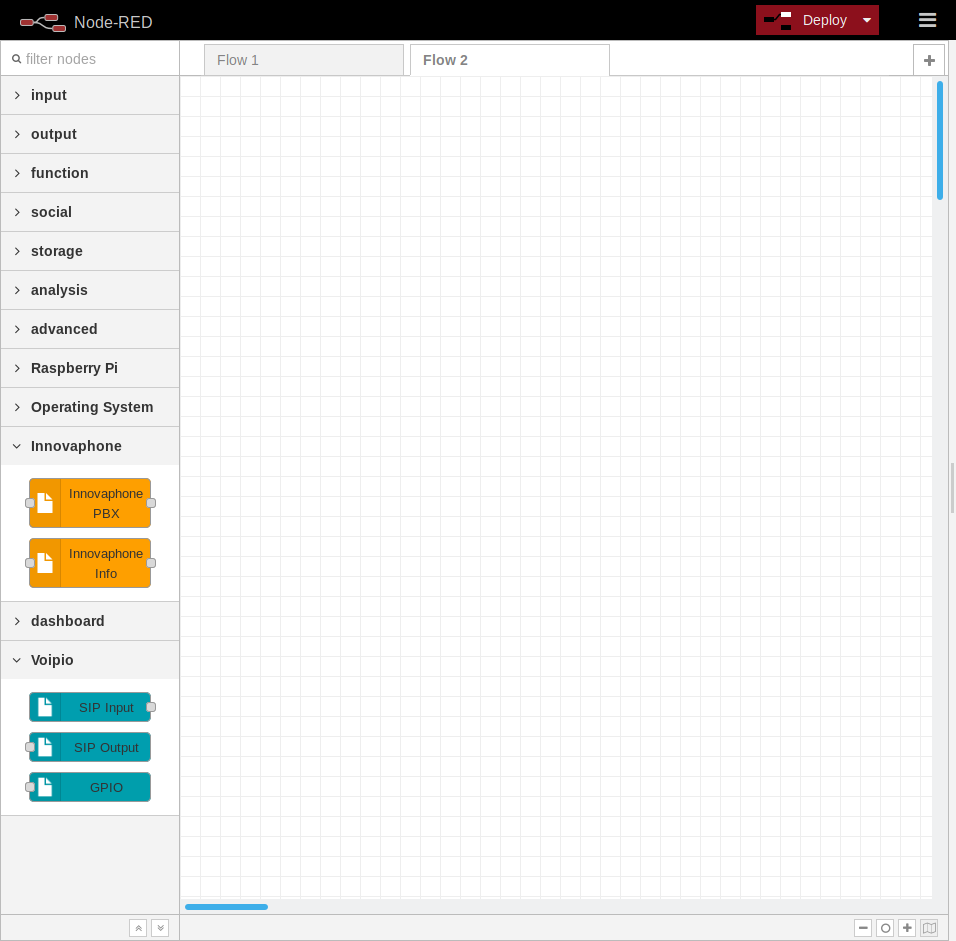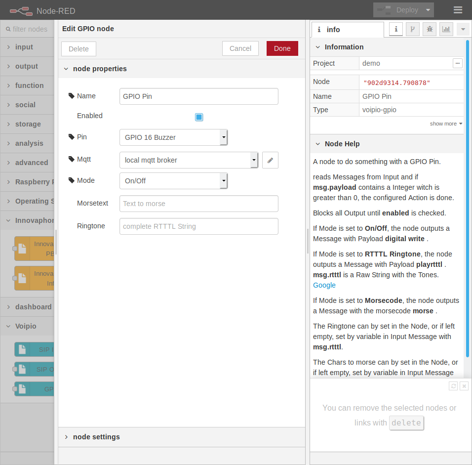 Node Red ist vorkonfiguriert auf die Benutzung von zwei SIP Accounts, die jeweils den Buzzer und LED schalten.